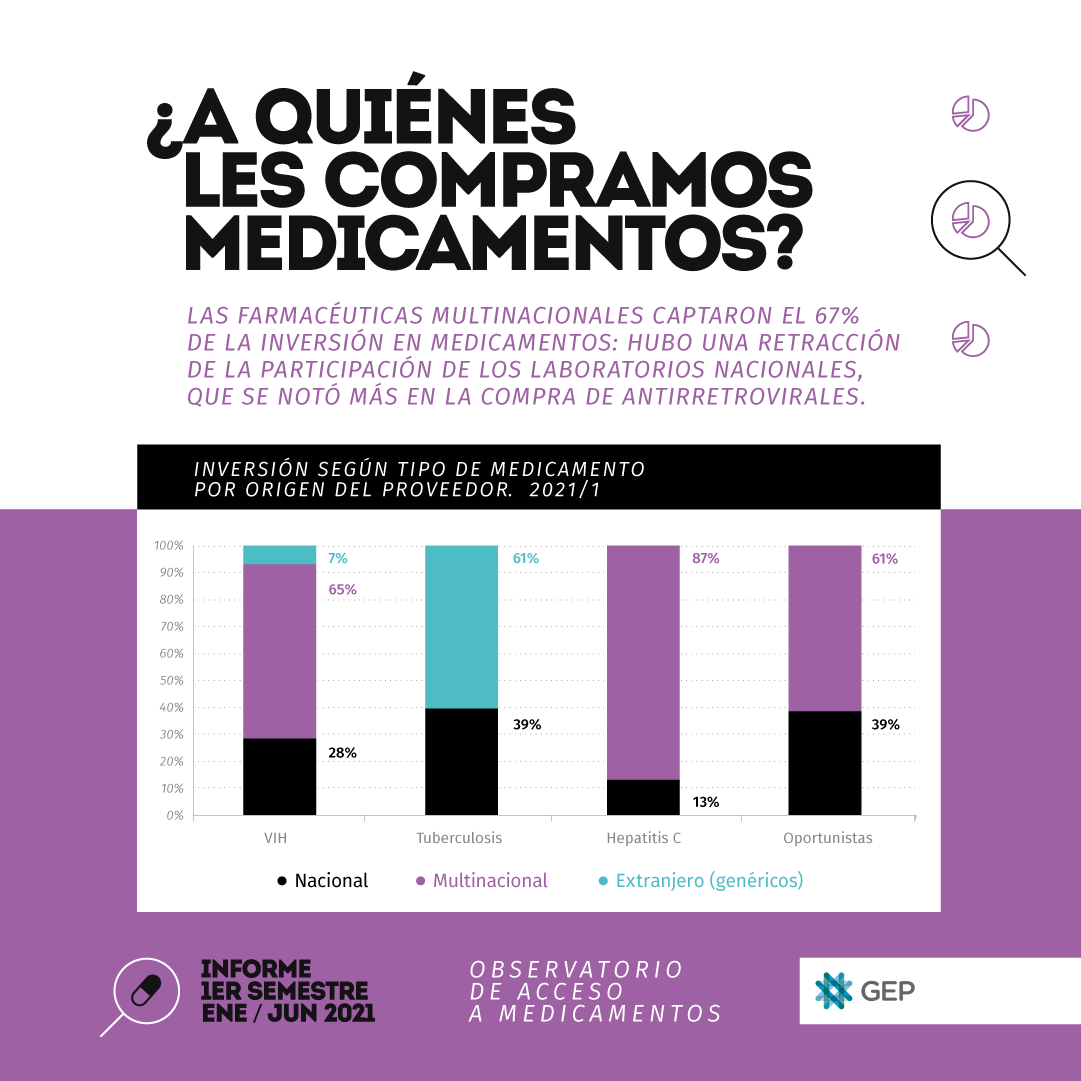Mañana es un nuevo día Mundial del VIH y, desde Fundación GEP, presentamos el informe del Observatorio de Acceso a Medicamentos, realizado sobre las compras de medicamentos hechas por el Ministerio de Salud de la Nación durante el primer semestre de 2021, que pretende responder varias preguntas: ¿Cómo se realizan las compras de medicamentos? ¿Qué pasó con el presupuesto que tiene la Dirección de Respuesta al VIH, ITS, Hepatitis Virales y Tuberculosis (DVIHT) y el precio de los medicamentos? ¿Se compran medicamentos a empresas nacionales o a compañías farmacéuticas transnacionales que no quieren que se #LiberenLasPatentes?