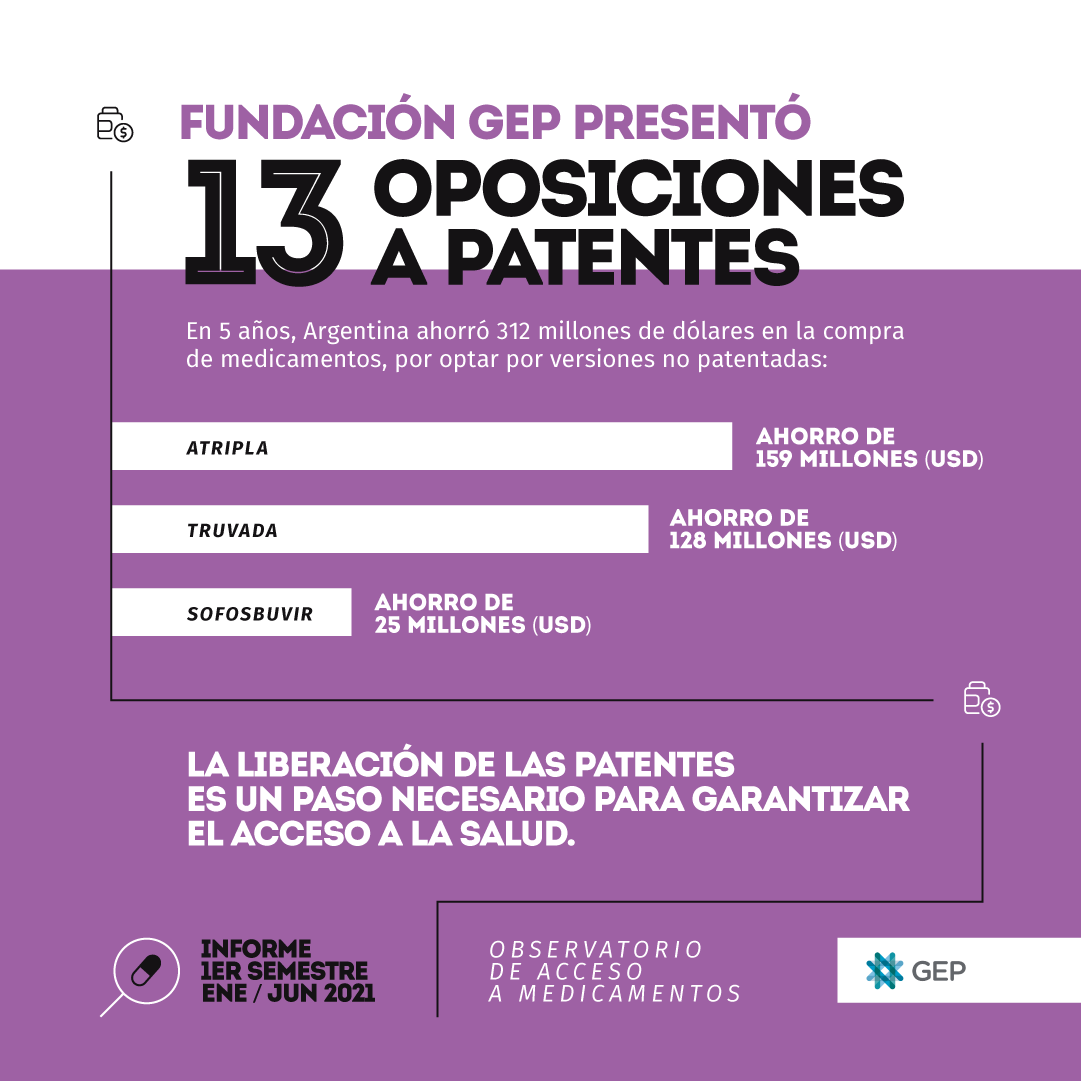 Una de las primeras conclusiones del Informe tiene que ver con una la alarma que se perpetúa hace varios años: la inversión en medicamentos consume cada vez mayor proporción del presupuesto y compromete la disponibilidad de recursos para implementar políticas de inclusión social, prevención y diagnóstico, sabiendo que hay distintas herramientas que permiten realizar esas adquisiciones a precios más asequibles. De hecho, gracias a las oposiciones a patentes presentadas por Fundación GEP desde el año 2013, el Estado ahorró más de 312 millones de dólares en compras públicas.